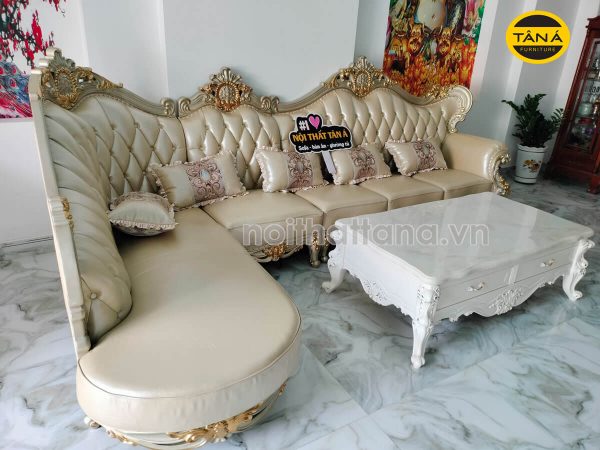 Ghế sofa da bò tiếp xúc tân cổ điển góc L Sang Trọng AT-885